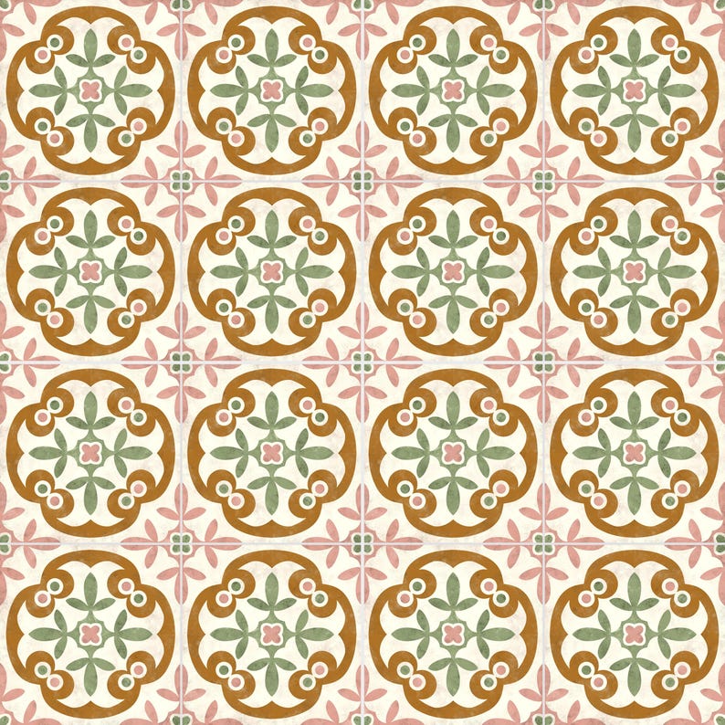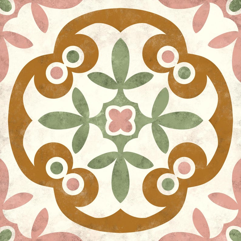 Earth tones with soft hues and an intricate classic pattern create a cozy, rustic vibe; perfect for making any space feel inviting and one-of-a-kind.
