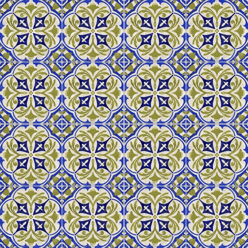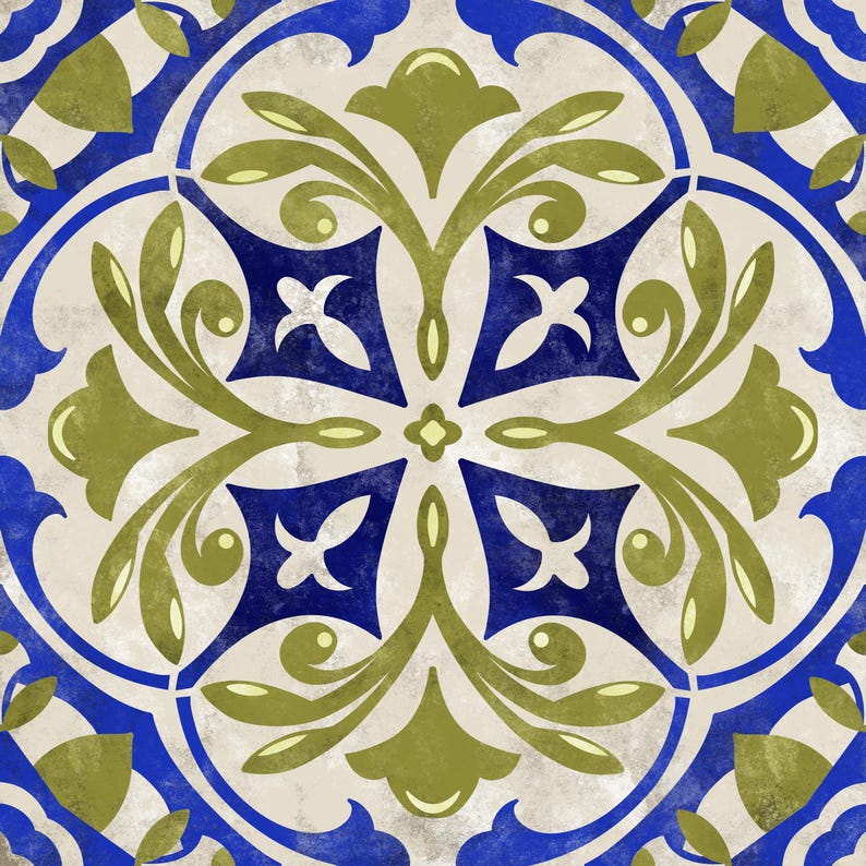 Blue and lime in a classic organic motif; a bold, dynamic combination that adds a modern touch with timeless flair.